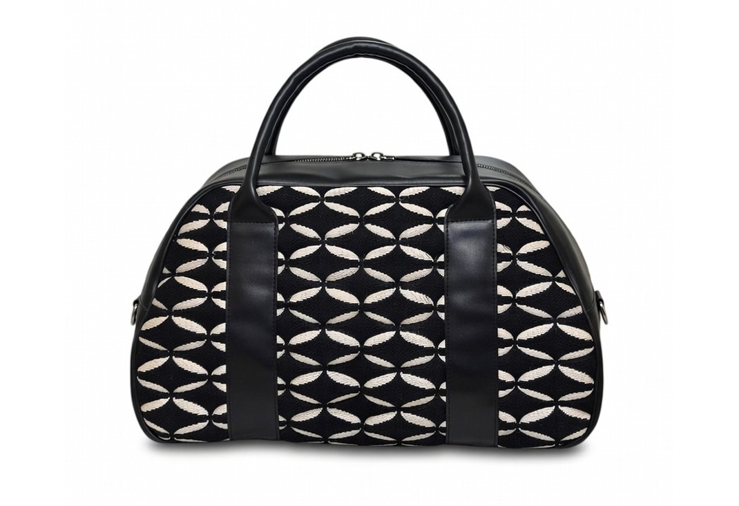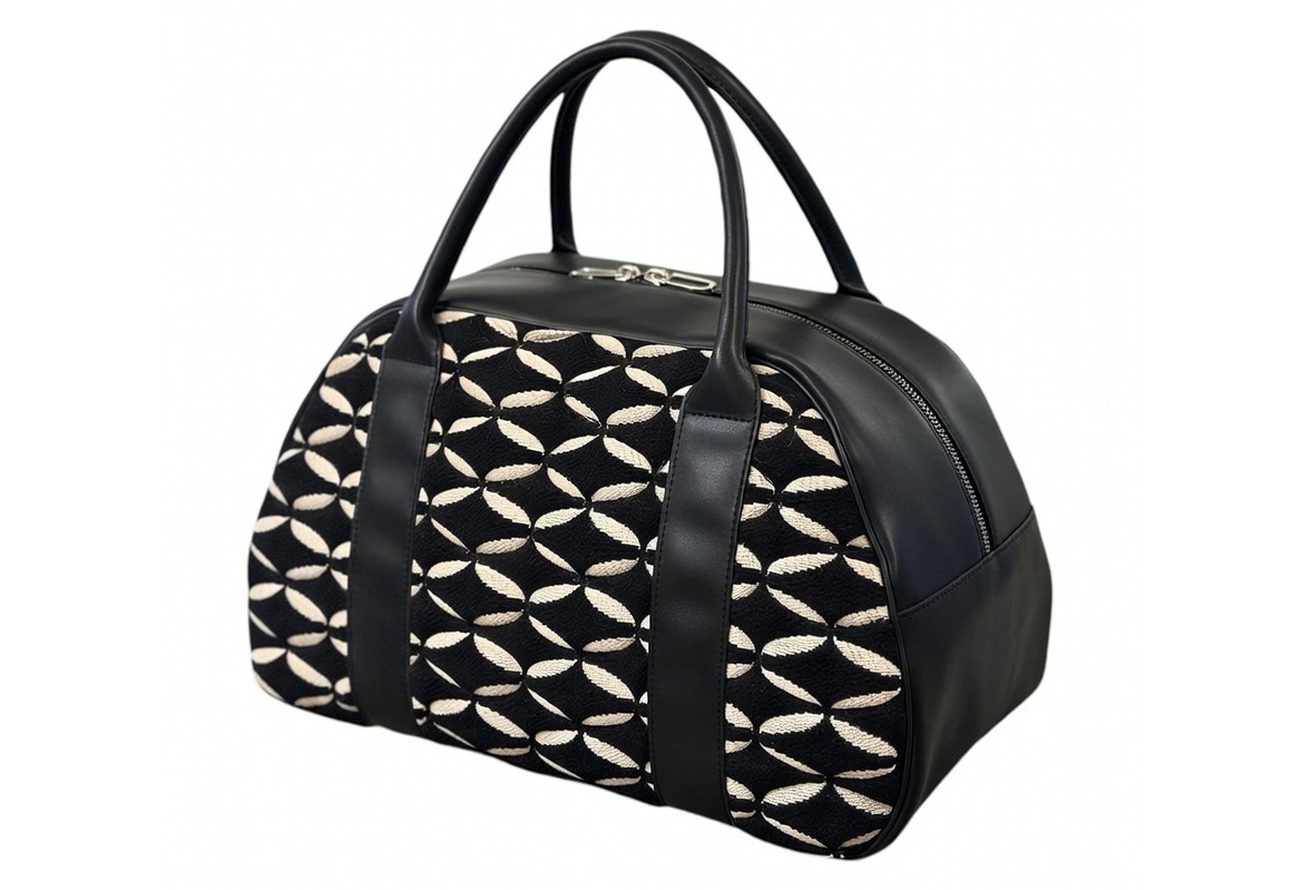 Ce modèle est confectionné dans le tissu Ellipse de la maison Nobilis, un jacquard en coton au motif géométrique contemporain. Son motif surpiqué apporte un relief élégant, donnant au sac une ligne dynamique et moderne.