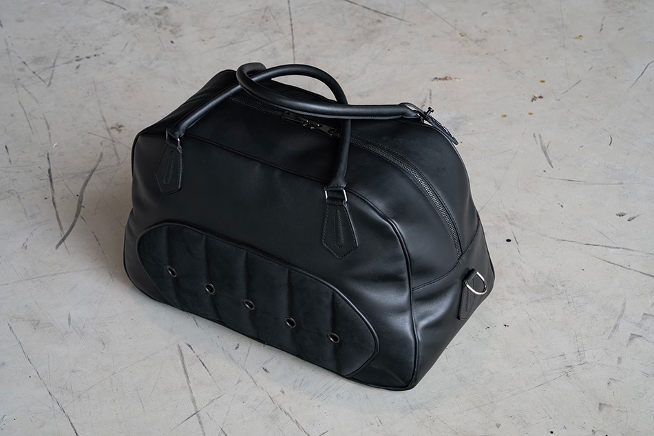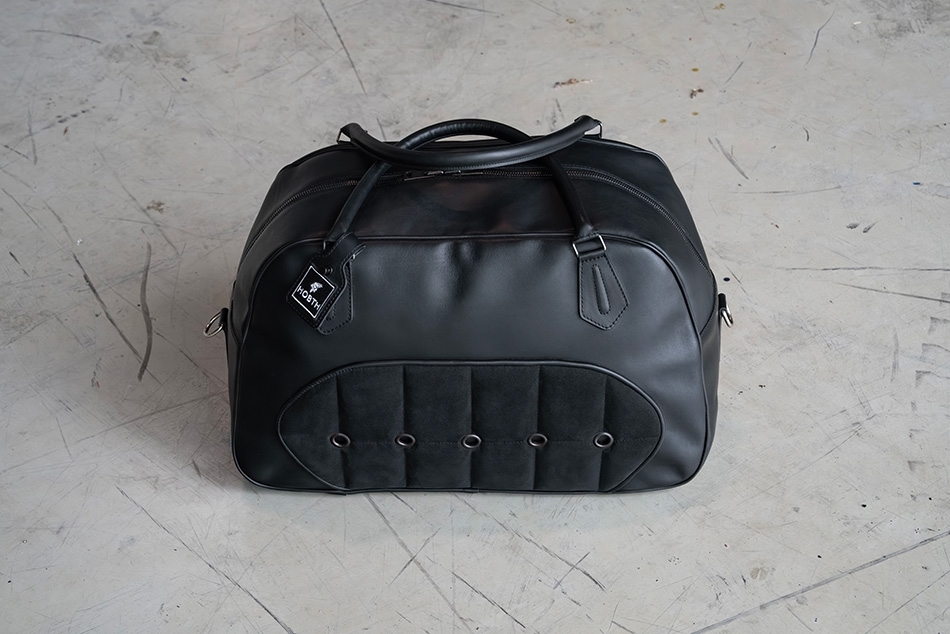 Inspiré par la mythique Ford GT40, ce sac week-end incarne l’esprit des voitures de course dans une pièce au caractère affirmé. La gamme SHELBY reprend les codes techniques et esthétiques de l’habitacle GT40, mêlant Alcantara, cuir, rivets métalliques et matelassage pour une signature visuelle à la fois sportive et élégante.