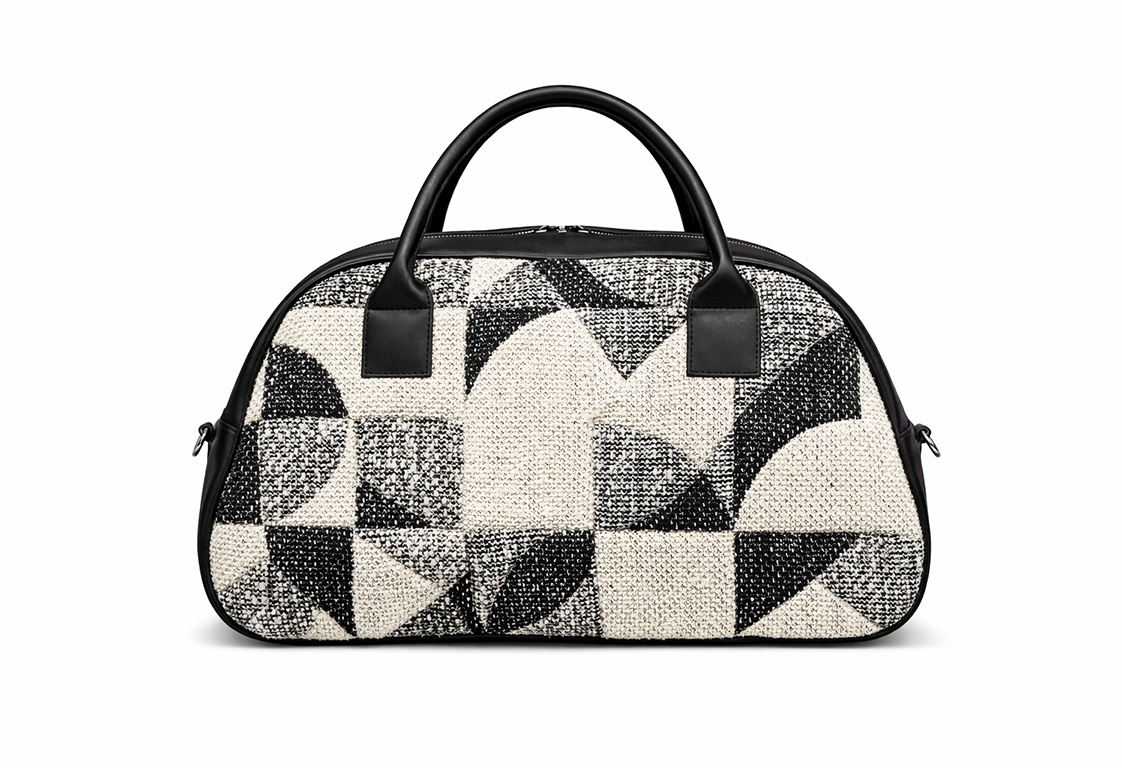 Ce sac est réalisé avec le tissu Kiruna de la maison Nobilis. Son motif géométrique aux formes abstraites juxtaposées a été travaillé avec un surpiquage qui apporte un relief raffiné, et confère à ce bagage une allure à la fois moderne et dynamique.